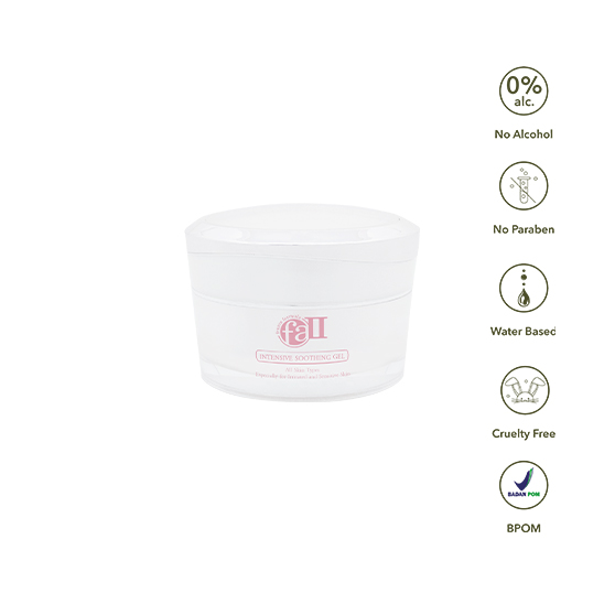 FA-II Intensive Soothing Gel seperti arti namanya, ia diperkaya dengan anti-inflamasi untuk menenangkan kulit yang teriritasi dan sensitif.