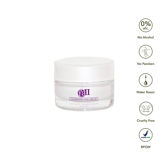 FA II Lightening Day Cream adalah formulasi khusus untuk kulit berpigmen. Kombinasi dengan FA-II Lightening Series lainnya sangat direkomendasikan.