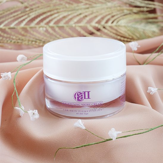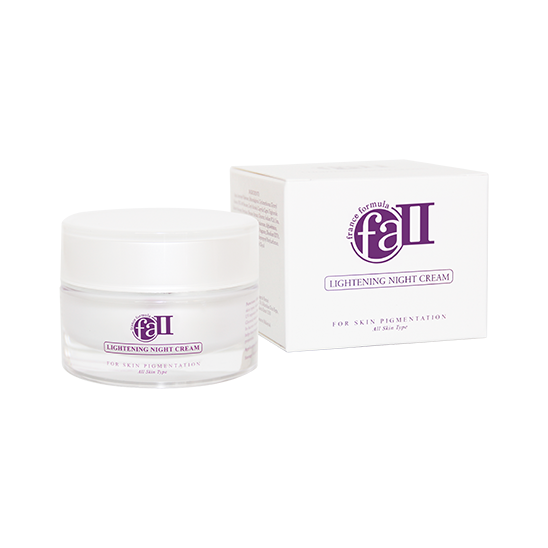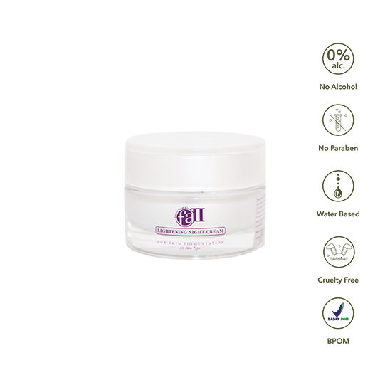 FA II Lightening Night Cream Ini adalah formulasi khusus untuk kulit berpigmen. Kombinasi dengan FA-II Lightening Series sangat direkomendasikan.