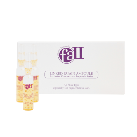 FA-II Linked Papain Ampoule  ampul yang diformulasikan khusus untuk kulit berpigmen yang mengandung pelembab alami yang membantu lapisan antar sel kulit menjadi kuat dan membuat kulit menjadi halus. Membantu pengelupasan sel kulit mati dan rusak dari permukaan kulit dan membuat kulit menjadi halus. Mengandung bahan yang menenangkan kulit yang teriritasi (soothing agent). Membantu memudarkan pigment dan memutihkan/mencerahkan kulit wajah.